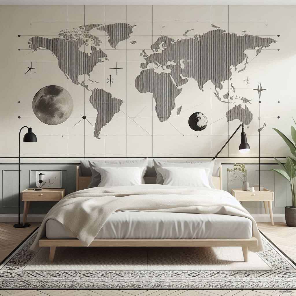 Add a touch of old-world charm and wanderlust to your bedroom with vintage map wallpaper.