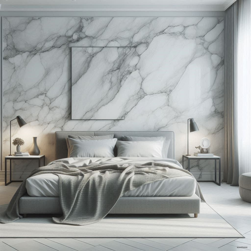 Bring the timeless elegance of marble into your bedroom with marble effect wallpaper.