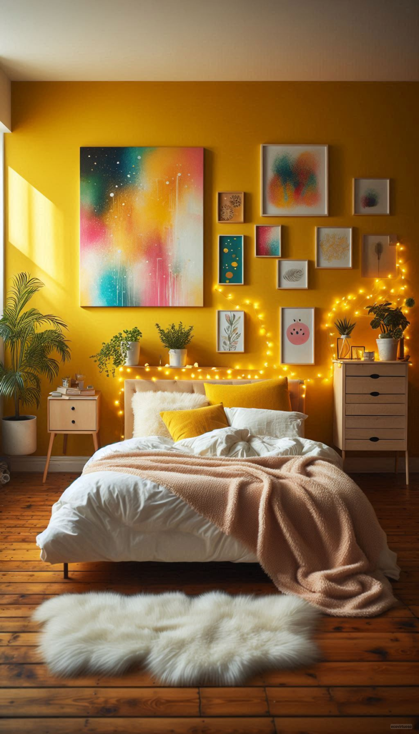 Twinkling fairy lights add instant charm and ambiance to any room, especially a cozy bedroom!