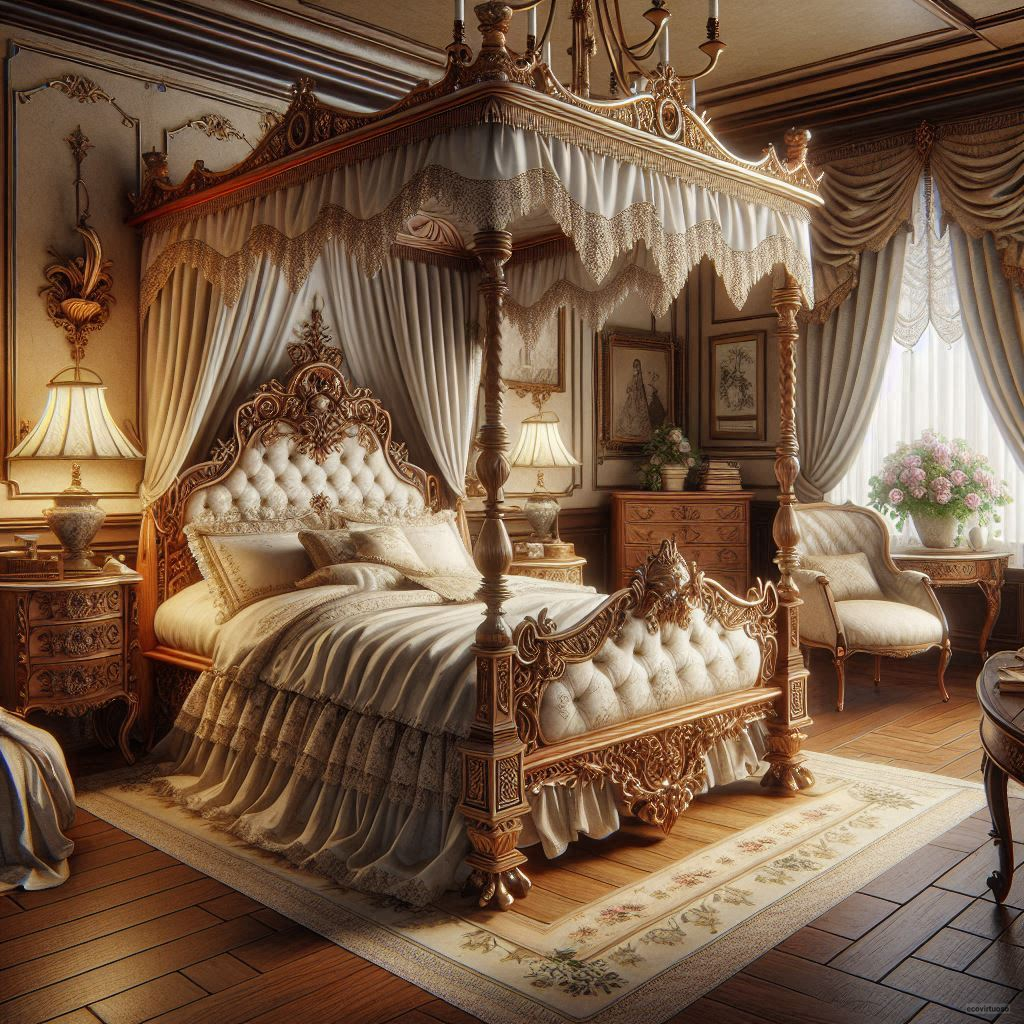 These beds, with their tall posts and often elaborate canopies, are the epitome of luxury and grandeur.